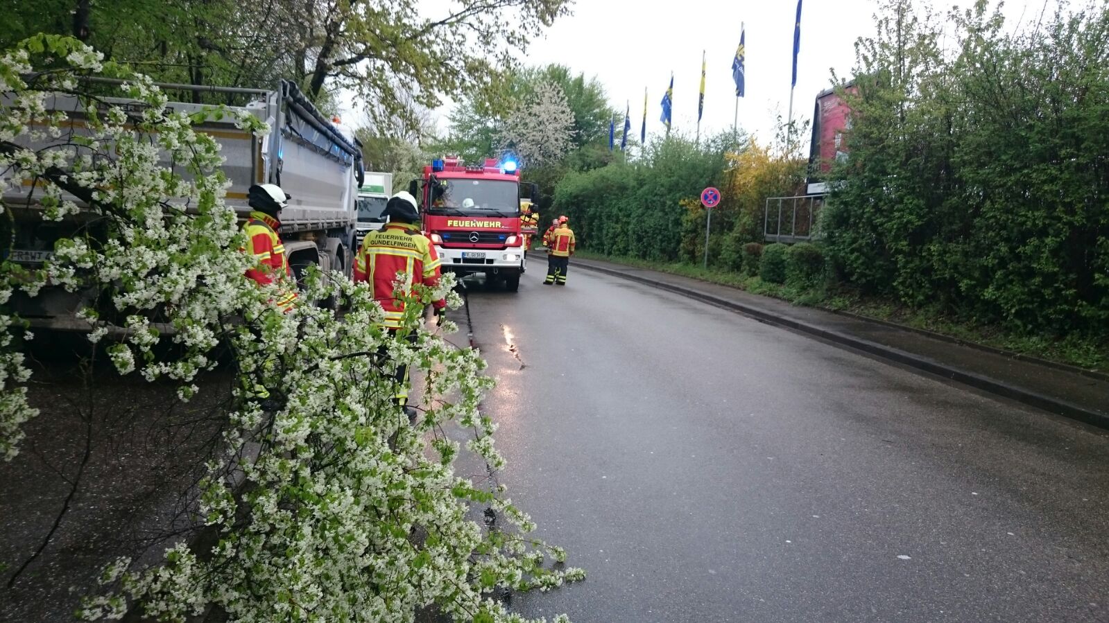 In der Industriestrasse ragte ein Umgestürzter Baum auf die Fahrbahn. Der Baum wurde zersägt und die Fahrbahn gereinigt.